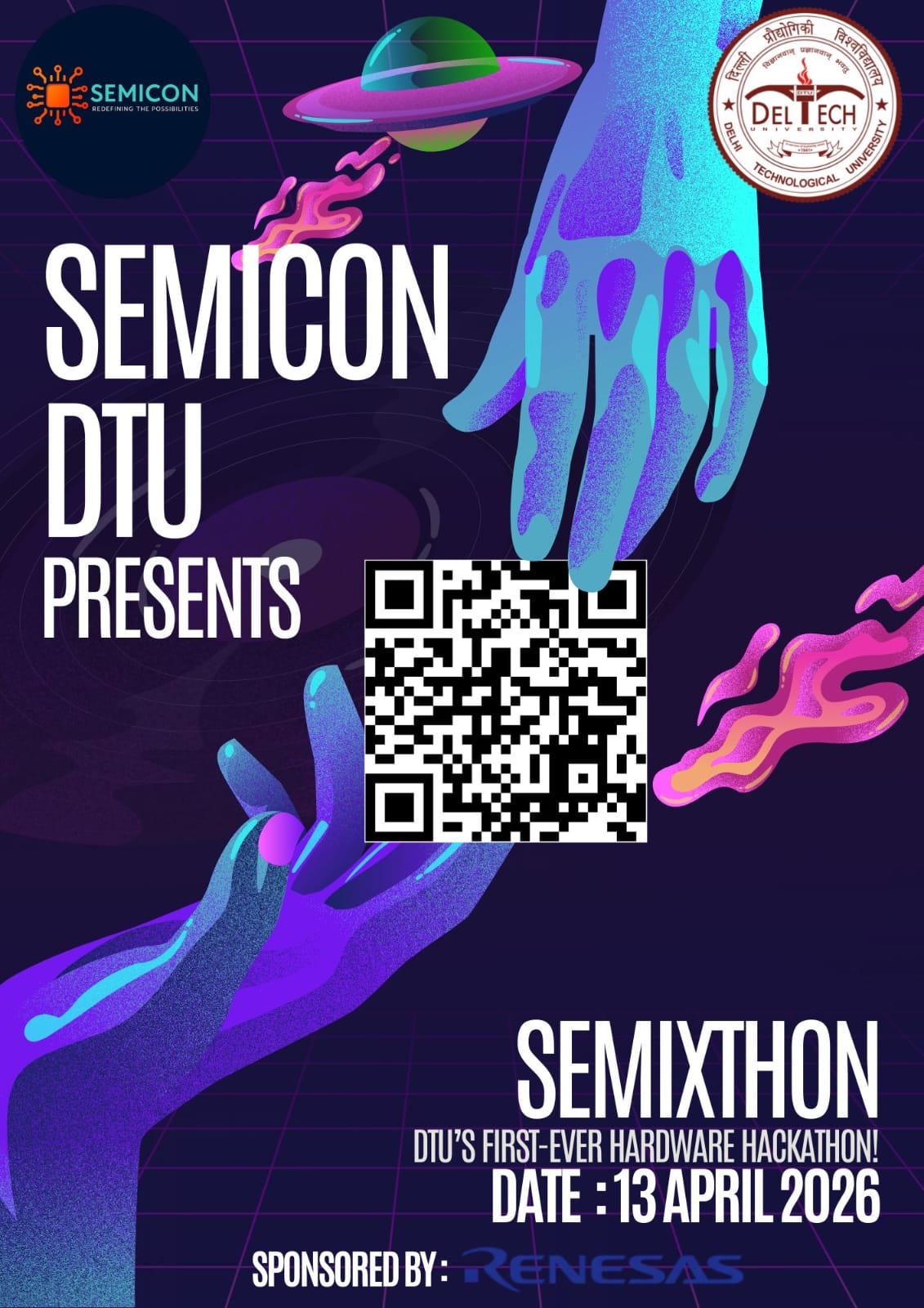 SemiXthon is a 10-hour offline hardware hackathon organized by Semicon DTU, in collaboration with the Vinod Dham Center of Excellence for Semiconductor and Microelectronics, Delhi Technological University.